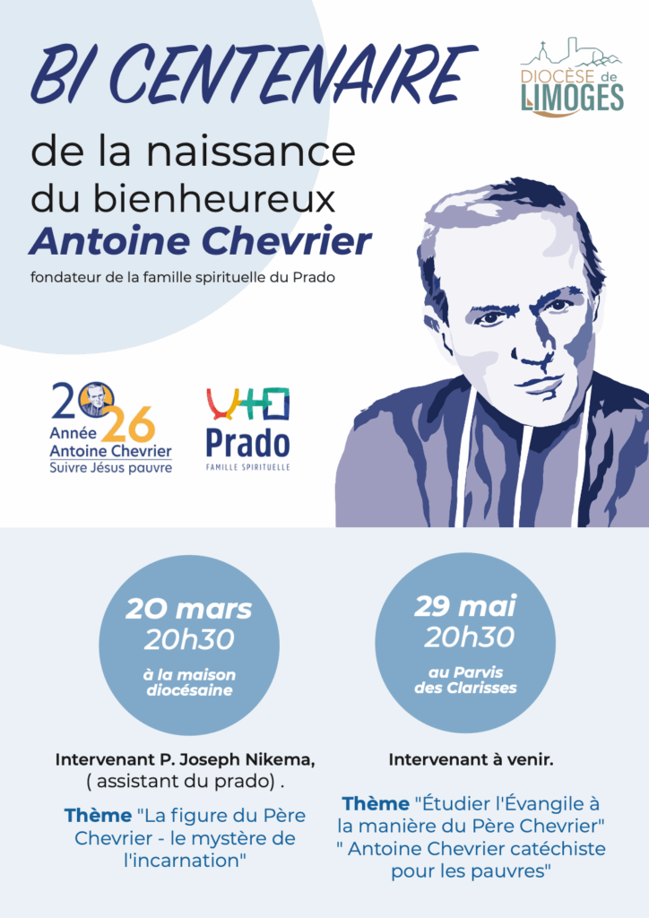 À l’occasion du bicentenaire de la naissance du bienheureux Antoine Chevrier (fondateur de la famille spirituelle du Prado), retrouvez dès maintenant toutes les informations sur les journées du 20 mars ainsi que du 29 mai proposées à cette occasion via l’affiche ci-dessous !