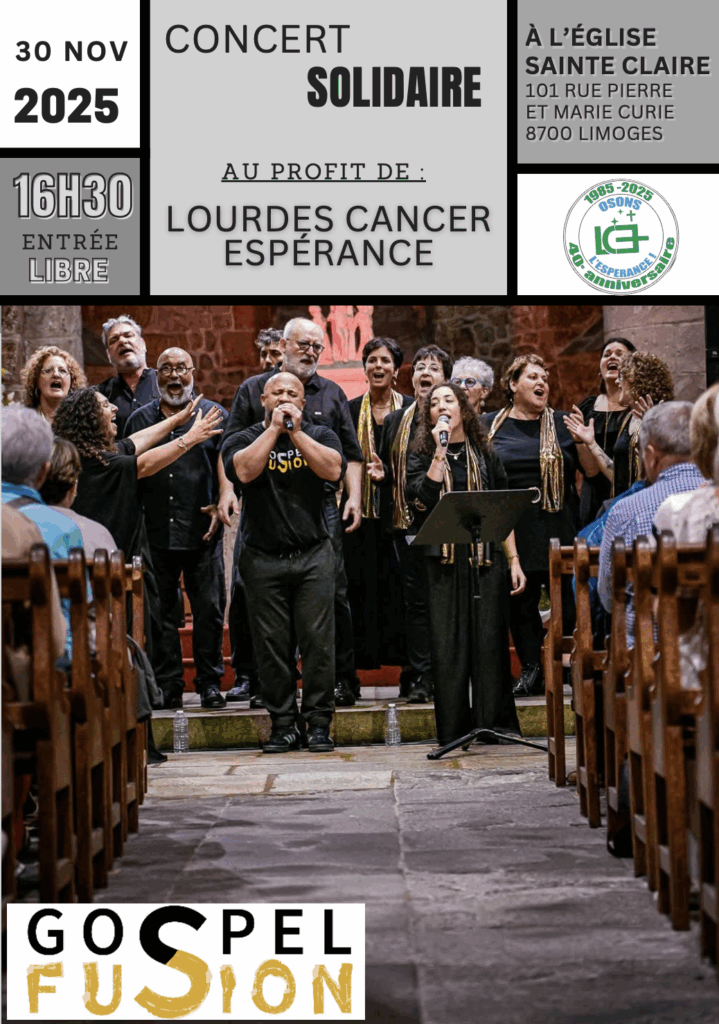 Un concert solidaire au profit de Lourdes Cancer Espérance vous est proposé le 30 novembre 2025 dans l’église Sainte-Claire à 16h30 ! L’entrée est libre, venez nombreux !