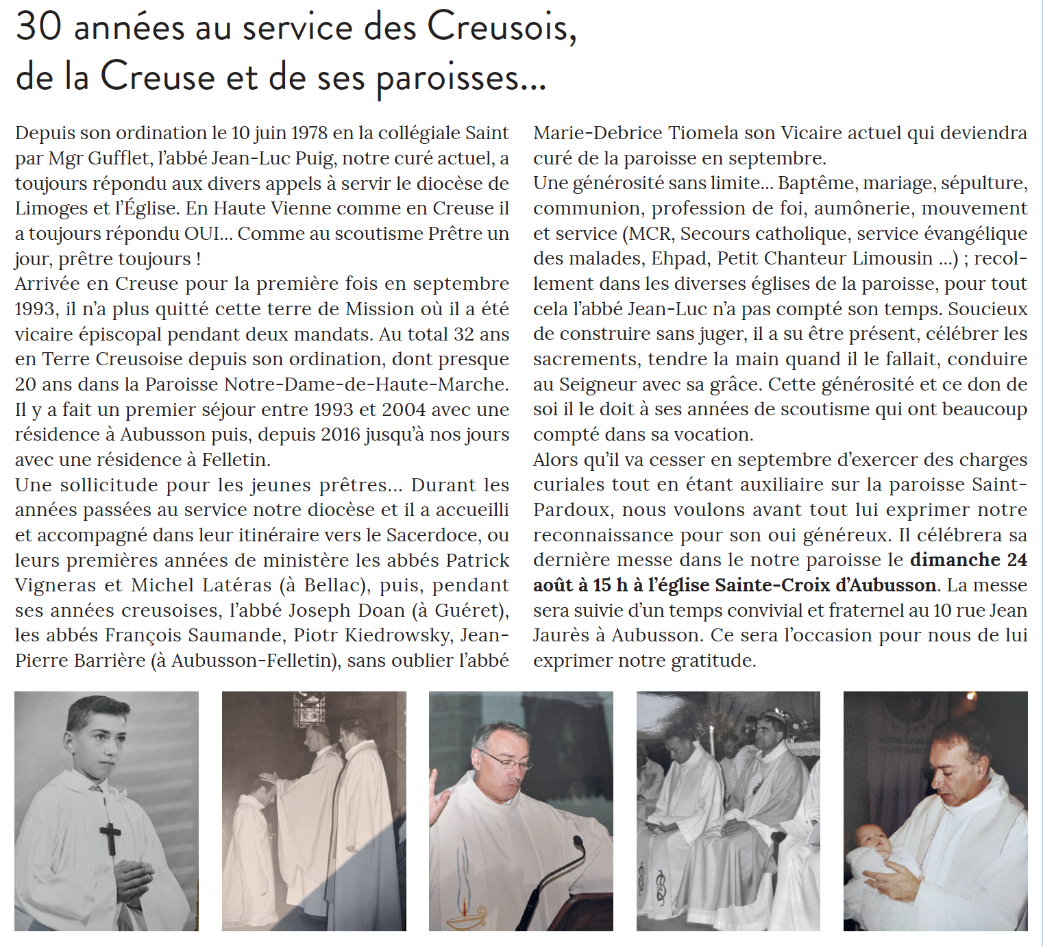 Retrouvez un article édité à l’occasion des 30 ans de sacerdoce du père Puig (© Sillon – juillet 2025)