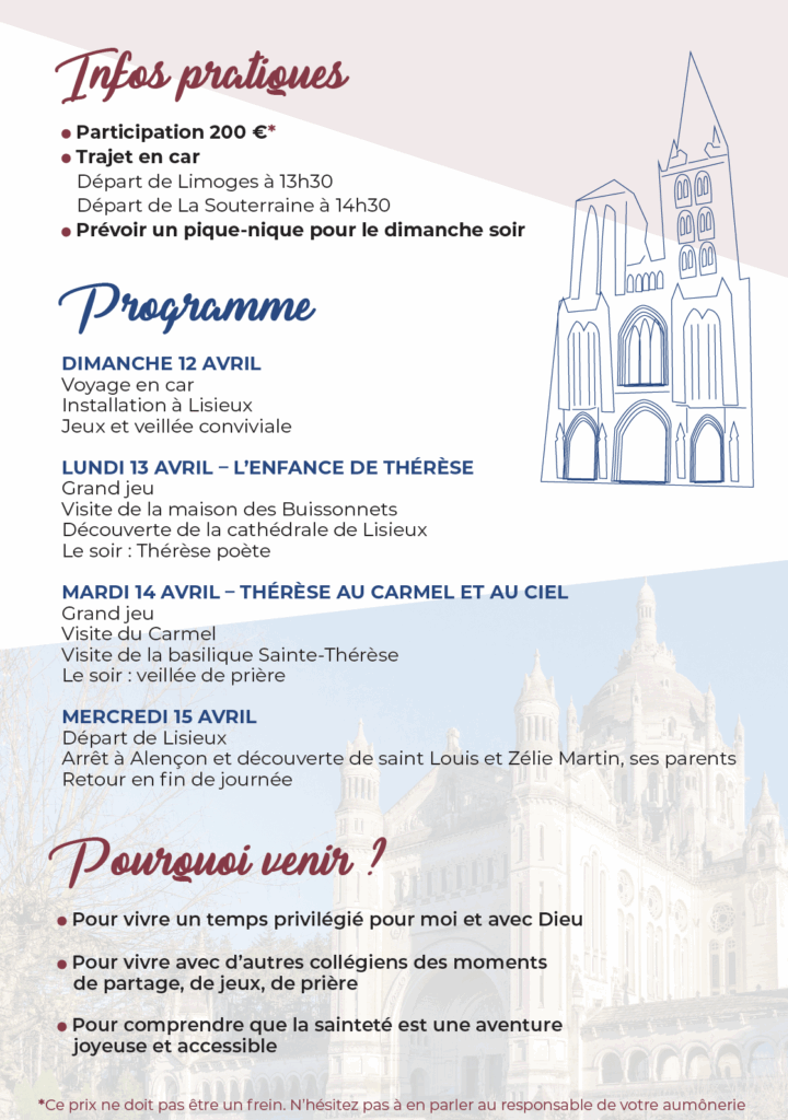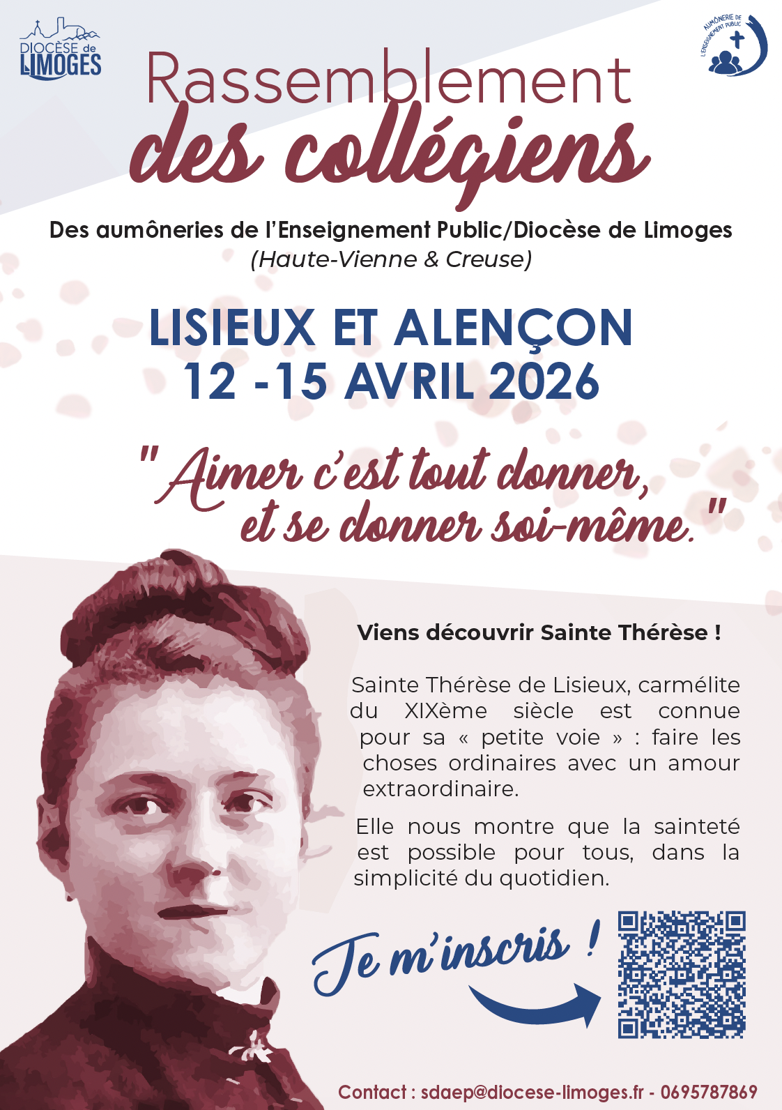 Un rassemblement des collégiens des aumôneries de l’Enseignement public sera proposé en direction de Lisieux et Alençon du dimanche 12 au mercredi 15 avril ! Retrouvez toutes les informations dès maintenant !