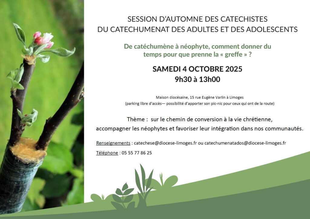 La session d’automne des catéchistes du catéchuménat des adultes et des adolescents aura lieu le samedi 4 octobre de 9h30 à 13h à la maison diocésaine de Limoges !