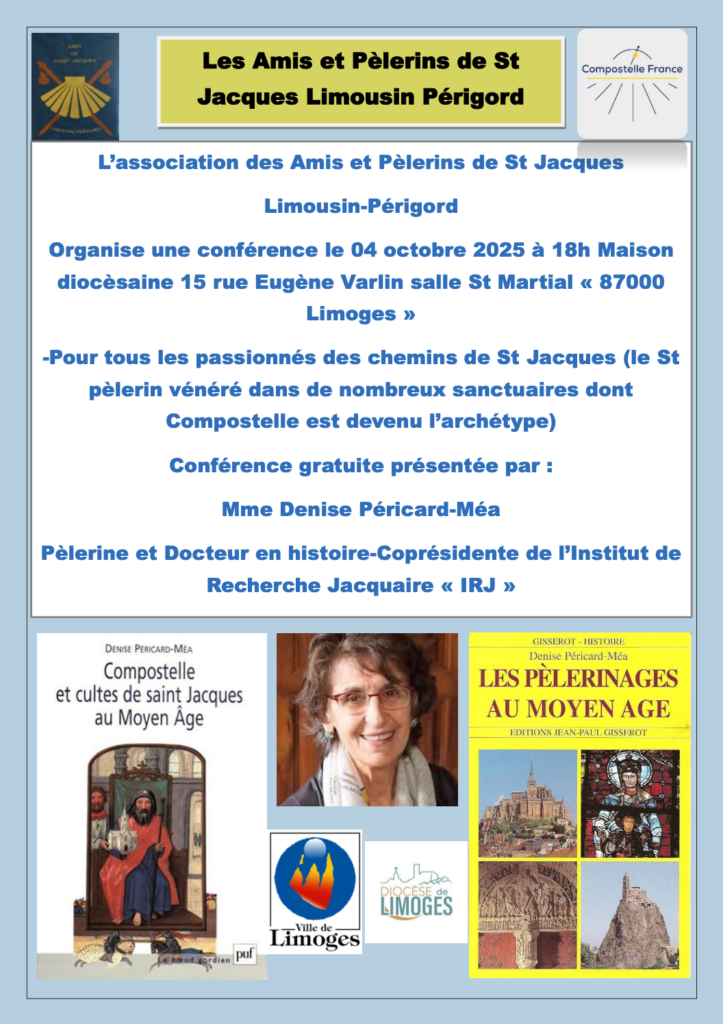 Conférence - pour tous les passionnés des chemins de St Jacques Changer de paroisse Diocèse de Limoges Agenda Conférence – pour tous les passionnés des chemins de St Jacques Conférence – pour tous les passionnés des chemins de St Jacques Partager Sur Facebook Sur Twitter Sur Linkedin Par Email 04octobre Maison diocésaine Informations pratiques Maison diocésaine samedi 04 octobre à 18h00
