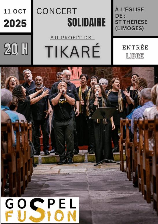 Concert Gospel organisé le samedi 11 octobre par le comité de jumelage de la paroisse Saint-Éloi en faveur de sa paroisse jumelle de Tikaré : à 20h dans l’église Sainte-Thérèse