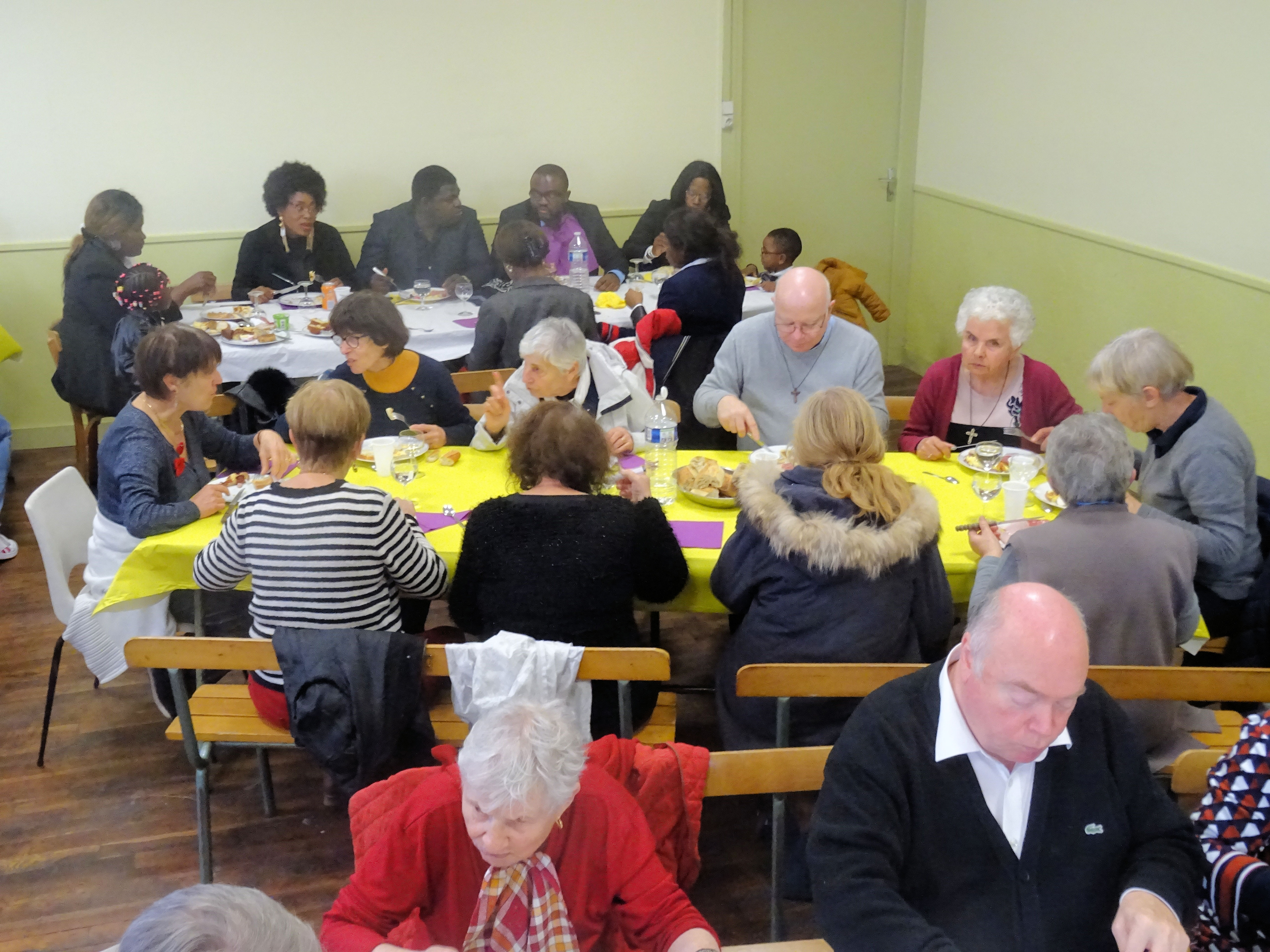 Joie d’un café d’après-messe et d’un apéritif festifs, et joie d’un repas partagé par près de 80 personnes.