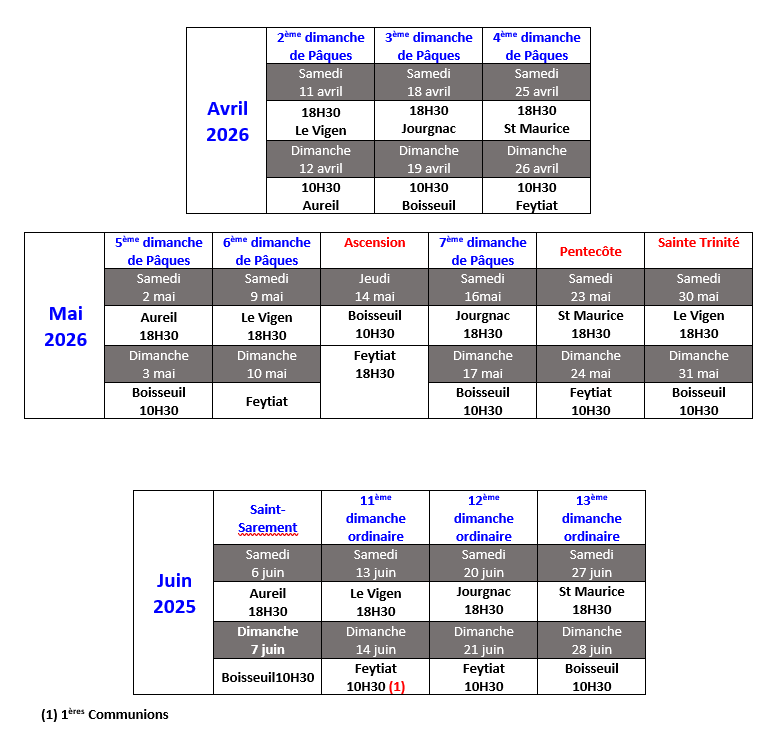 AGENDA RENCONTRES ET ACTIVITES DIVERSES : A consulter sur la FIP à l’onglet « Information Paroissiale »