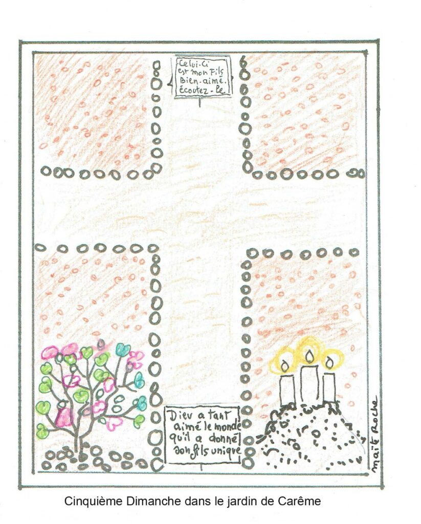 | Quelques conseils suggérés par Maïte Roche dans son croquis : Un amour qui donne vie ! – Sème dans les carrés des graines (lentilles, persil, pois, blé, épeautre, cresson…) -Prends soin de les arroser, la terre doit rester humide. L’eau c’est la vie ! – prépare le sol de chaque carré en vue des éléments qui seront apportés la semaine prochaine (un peu de terre) |